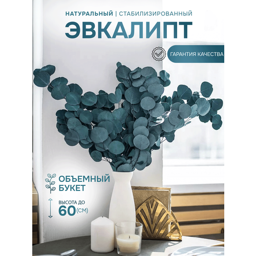 Набор из этих веточек - отличный вариант для подарка. Ваш друг или близкий человек, увлеченный дизайном интерьера, будет в восторге от такого необычного и красивого сюрприза. Подобные растения прекрасно сочетаются с любыми элементами интерьера и декорациями. Они могут стать основой для создания натуральной композиции или же использоваться как акцент на фоне других предметов. Важным аспектом является то, что эти цветы стабилизированные — это значит, они сохранят свою первозданную красоту на протяжении долгого времени. Стабилизация позволяет им не увядать и сохранять свежий вид. Это делает данный продукт от ARANTA идеальным выбором для тех, кто хочет добавить зелени в свой дом без лишнего ухода за растениями. Эвкалипт стабилизированный – это всегда модное и актуальное решение для вашего интерьера!