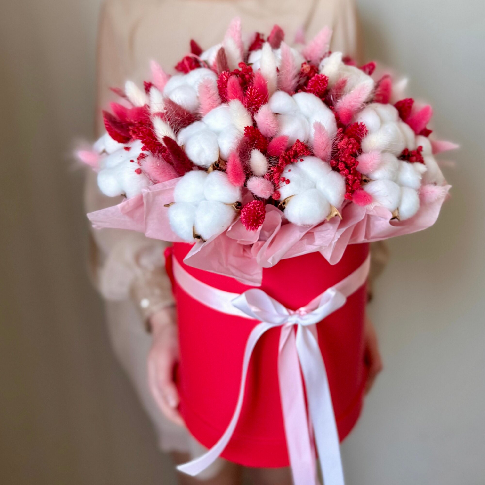 Композиция из сухоцветов «Вечный букет», лагурус, хлопок, гипсофила, фаларис, высота 43см: сравнение цен, характеристики, фото, актуальное наличие и цены.