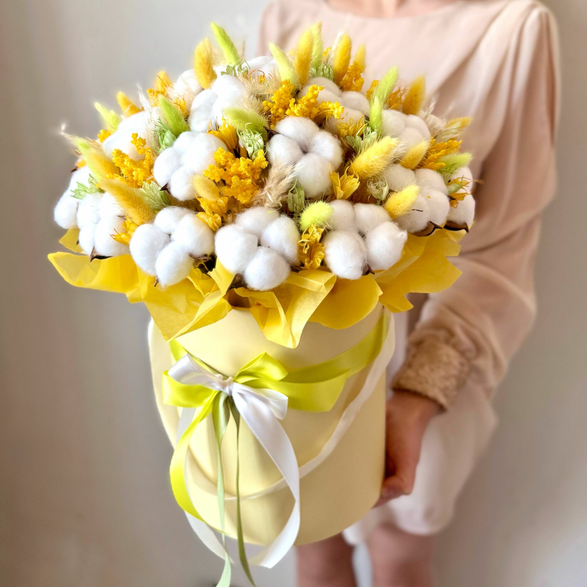 Купить Сухоцветы в большой коробке желтые зеленые XL, вечный букет с доставкой по всей России. Сухоцветы в большой коробке желтые зеленые XL, вечный букет: сравнение цен, характеристики, фото, актуальное наличие и цены.