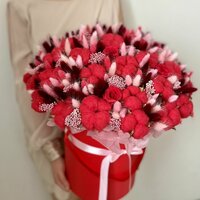 Каждый заказ сопровождается вкусным презентом, а еще мы надежно упаковываем ваш букет от дождя и снега, даем четкие инструкции курьеру по транспортировке.