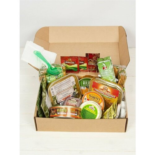 Товар имеет Сертификат Соответствия. Энергетическая ценность – 4000 ккал. Представляем вам сухой паек "Аварийный" - незаменимый товар для путешественников, туристов, охотников и всех, кто ценит надежность и высокое качество продуктов питания. Этот военный, армейский, суточный рацион питания является идеальным выбором для тех, кто хочет быть готовым ко всему. Наш сухпай, созданный специально для России, обеспечит вам все необходимое для поддержания сил и энергии в любых экстремальных условиях. Этот набор, включающий индивидуальный рацион питания (ИРП), содержит все необходимые пищевые компоненты, чтобы вы могли оставаться активным и эффективным в любой ситуации. В составе сухого пайка "Аварийный" вы найдете богатый набор сбалансированных продуктов. Каждый ингредиент тщательно отобран таким образом, чтобы обеспечить вам не только необходимые питательные вещества, но и разнообразие вкусов и текстур. Наш сухпаек отличается усиленной формулой, которая позволяет сохранить все полезные свойства продуктов в течение длительного времени. Благодаря этому, вы можете быть уверены, что ваш паек останется свежим и пригодным к употреблению даже после длительного хранения. Это особенно важно, если вы планируете длительное путешествие или охоту в отдаленных местах. Сухой паек "Аварийный" также легко приготовить. Вам просто нужно добавить горячую воду, и через несколько минут вы сможете наслаждаться горячим и сытным приемом пищи. Удобная упаковка позволяет вам брать с собой необходимое количество паек, не перенагружая свой рюкзак. Не откладывайте свою безопасность и комфорт на потом - приобретите сухой паек "Аварийный" уже сегодня и будьте уверены в том, что у вас всегда будет надежный и вкусный источник питания в любых ситуациях. Наш товар предлагает непревзойденное сочетание качества, практичности и вкуса, что делает его идеальным выбором для всех, кто ценит надежность и удобство. Состав : Говядина тушёная Гост 250 г - 1 шт. Каша гречневая с говядиной Гост 250 г - 1 шт. Мясо тушёное с фасолью Гост 250 г - 1 шт. Пюре картофельное (сухая смесь)второе блюдо 60 г - 1 шт. Каша рисовая с изюмом сладкая (сухая смесь)второе блюдо 60 г - 1 шт. Паштет печёночный Гост 100 г - 1 шт. Икра из кабачков Гост 100 г- 1 шт. Сыр плавленый 80 г - 1 шт. Галеты армейские из муки пшеничной 1 сорта 200 г - 4 шт. Повидло фруктовое-яблочное 45 г - 1 шт. Паста шоколадно-ореховая 50 г - 1 шт. Напиток молочный сухой 30 г - 1шт. Чай чёрный 4 г - 2 шт. Кофе гранулированный 2 г - 1 шт. Сахар-песок 60 г - 3 шт. Соль 5 г - 1 шт. Перец чёрный молотый 1 г - 1 шт. Таблетка для дезинфекции воды - 3 шт. Салфетка дезинфицирующая - 3 шт. Салфетка бумажная - 3 шт. Ложка пластмассовая - 3 шт.