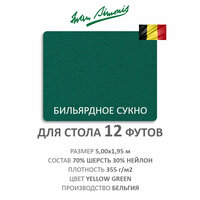 Ширина рулона 195 см. Состав сукна: 70% - шерсть, 30% - нейлон. Плотность: 355 г/м2. В зависимости от размера Вашего стола Вам потребуется погонных метров сукна: