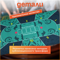 ♦️ Атмосфера профессионализма: насыщенный зелёный цвет, удобное покрытие и разметка «под раздачу» для шести игроков создают идеальную игровую обстановку.