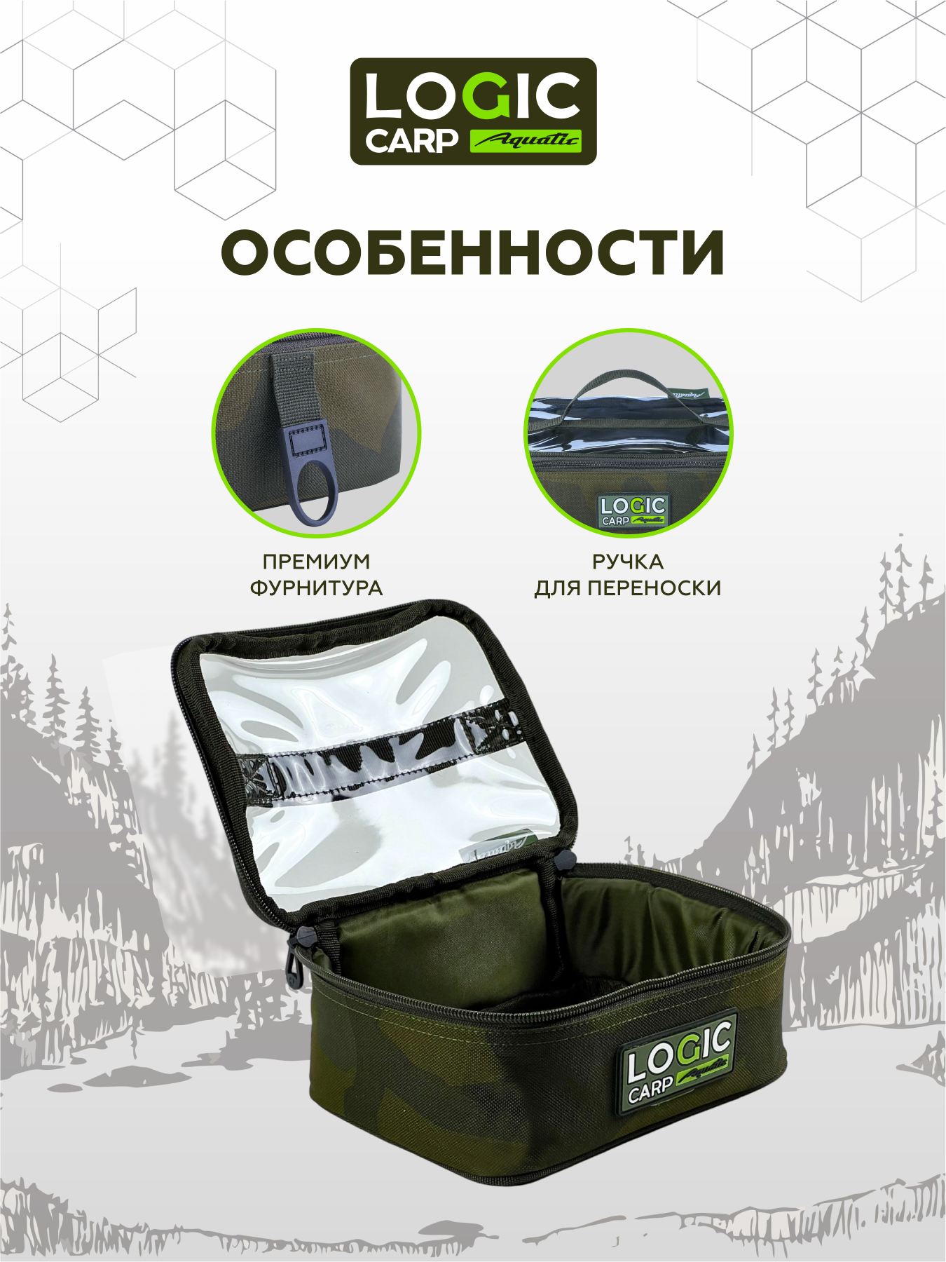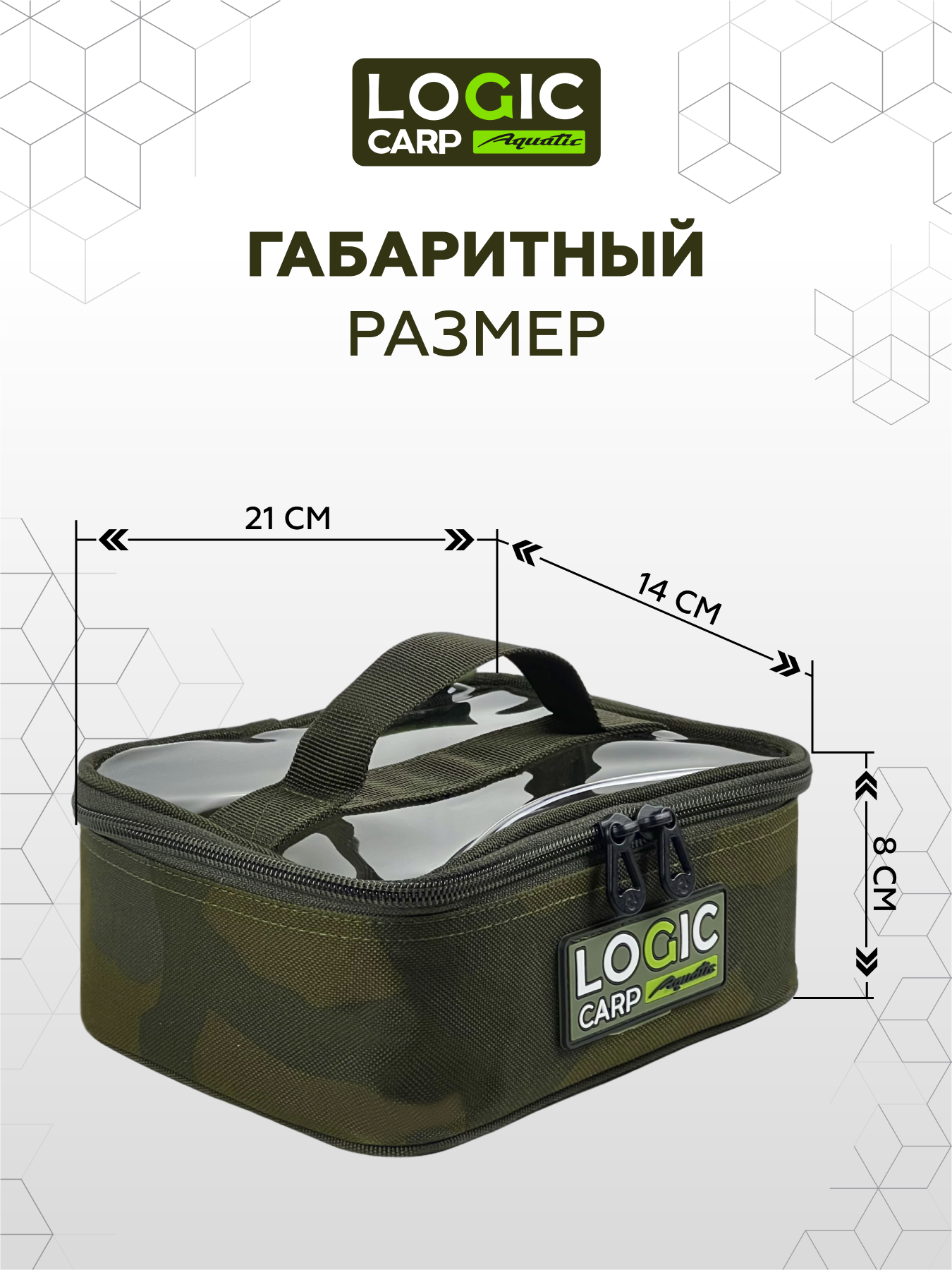 Logic Carp LC-B02 – компактная, но очень практичная сумка для различных рыболовных аксессуаров. Она отлично впишется в ваш рыболовный арсенал и станет надежным помощником на рыбалке. Эта сумка подойдет для хранения фидерных кормушек, приманок, маркерных грузов, крючков, лесок или другой необходимой мелочи для рыбака. Кроме того, ее можно использовать, как дорожный контейнер для предметов необходимых в любой поездке или путешествии. Благодаря прочному износостойкому материалу сумка долго сохраняет первоначальный внешний вид. Надежная премиальная фурнитура значительно продлевает срок службы и не подведет в ответственный момент. Для удобства сумка оборудована прозрачной крышкой, что значительно упрощает поиск необходимых предметов внутри. Компактные габариты позволят взять сумку в любую поездку, она не займет много места и поместится в любом багаже. На крышке предусмотрена прочная ручка для удобства транспортировки. Кроме того, имеется кольцо для пристегивания. Отдельного упоминания заслуживает стильный современный дизайн с логотипами бренда. С сумкой Logic Carp LC-B02 by Aquatic вы всегда будете организованны и готовы к рыбалке, имея все необходимое под рукой.