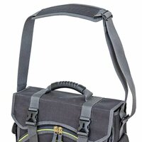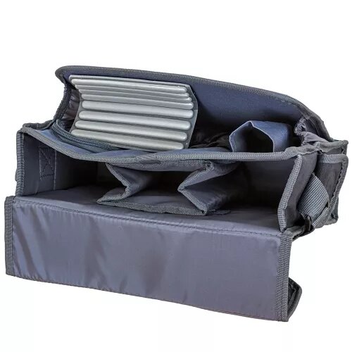 Характеристики: • Глубина: 11 см. • Ширина: 35 см. • Высота: 25 см. • Материал: синтетическая ткань. • Вес: 1122 гр. Полужесткая сумка Aquatic сделана из непромокаемых нейлоновых материалов. Сумка имеет 2 отделения с дополнительными перемещающимися перемычками и карманами на резинке. Сзади расположен карман во всю длину сумки. По бокам есть маленькие карманы с клапанами на липучке. На передней части расположена снимающаяся пенка для приманок. Современный дизайн позволит использовать ее также и в повседневной жизни. В сумку помещаются документы формата А4, данная сумка также удобна для ноутбуков и т. д. 35х28х11 см.