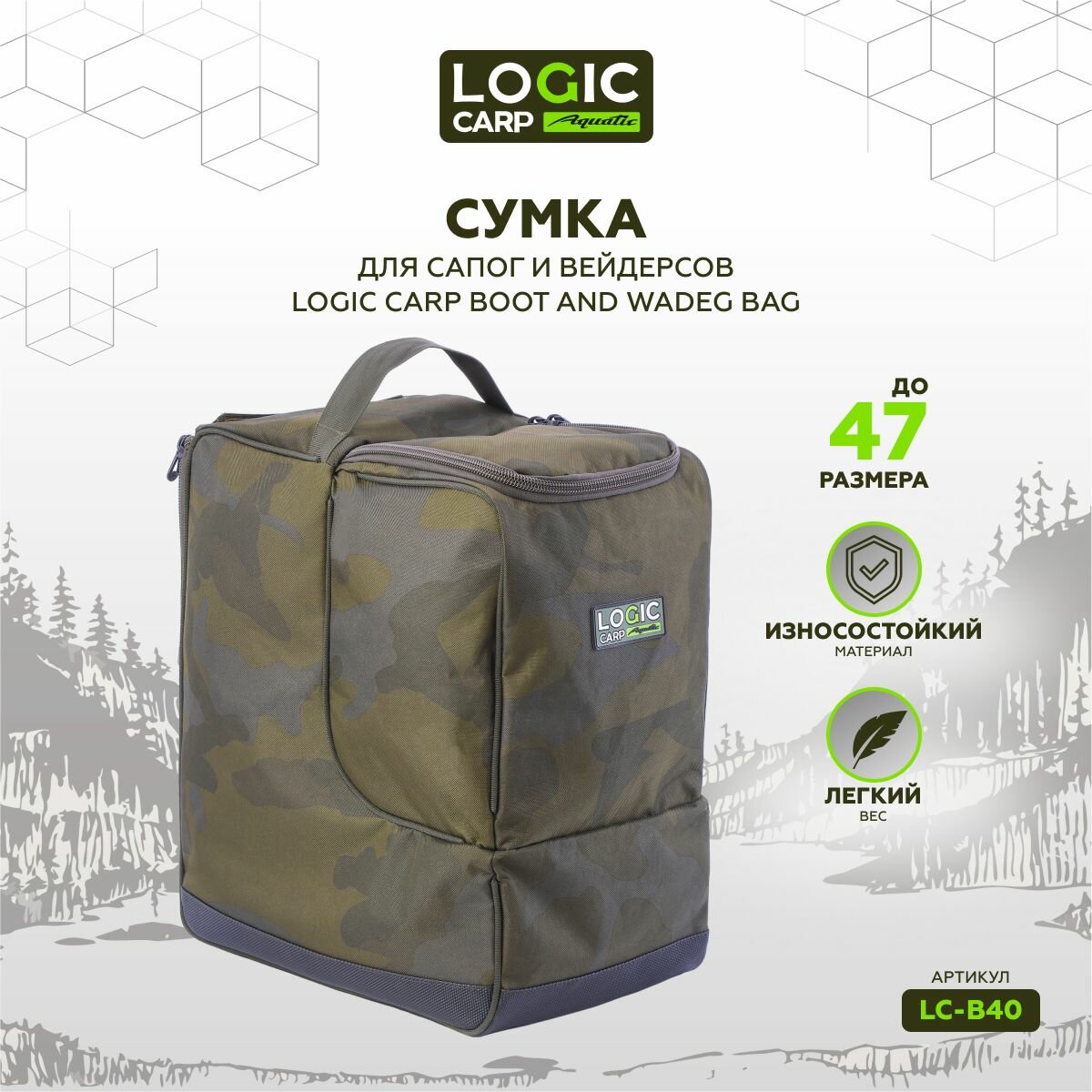 Купить Сумка чехол для хранения обуви, сапог и вейдерсов Logic Carp LC-B40 с доставкой по всей России. Сумка чехол для хранения обуви, сапог и вейдерсов Logic Carp LC-B40: сравнение цен, характеристики, фото, актуальное наличие и цены.
