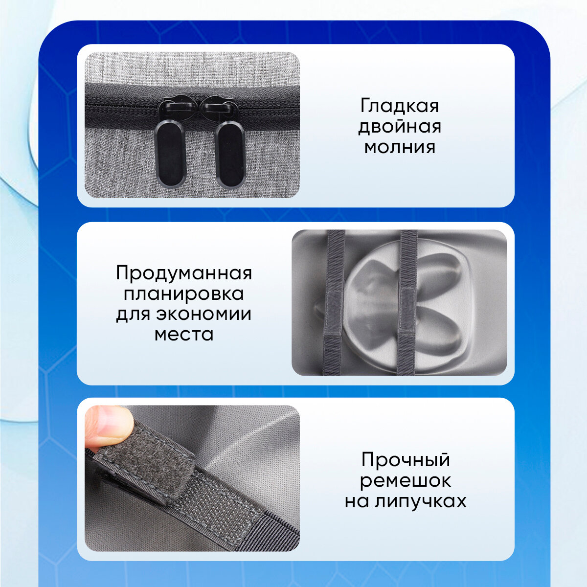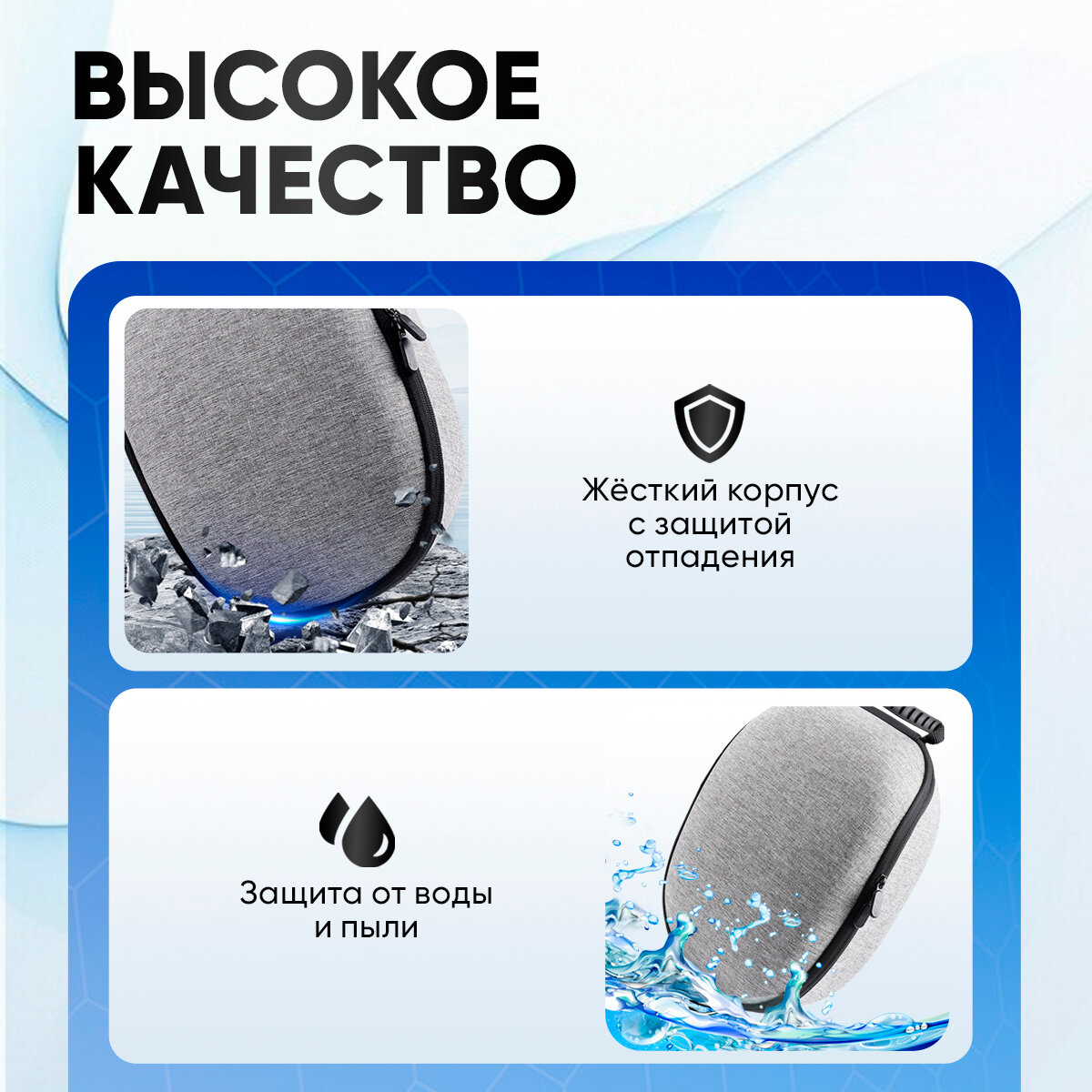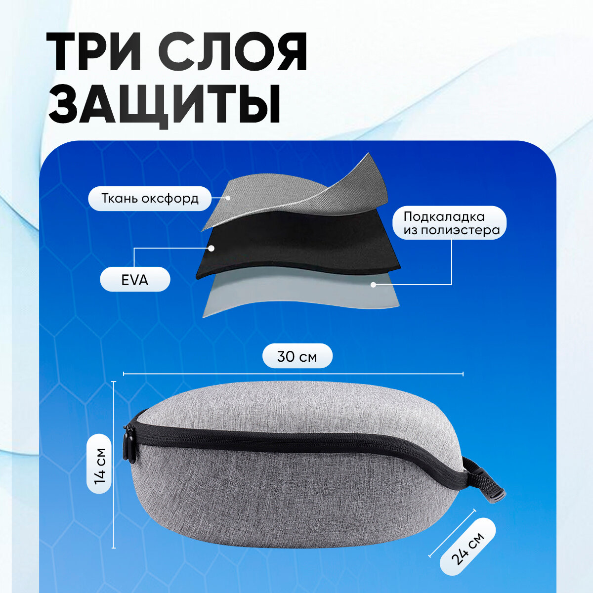 - Вместительность: Просторное внутреннее отделение вмещает не только очки Quest 3, но и аксессуары - кабели, контроллеры и др.