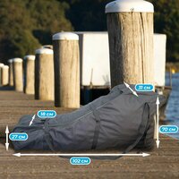 Особенностью данного чехла является использование 4 мм подложки, которая защищает мотор от царапин и легких ударов. Это гарантирует сохранность вашего лодочного мотора во время транспортировки и хранения.
