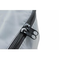 На боковой стороне чехла имеется вместительный карман для инструментов, банки с маслом, свечей зажигания. Внутренняя часть чехла из ткани Оксфорд 300 PU, в середине мягкая вставка, которая оберегает мотор от повреждений при перевозке, снаружи плотная ПВХ-ткань. Чехол легко моется, абсолютно не промокает. Чехол застегивается на мощную двустороннюю молнию. Для переноски на чехле имеются 3 ручки, а для плотного размещения мотора в он фиксируется тремя стропами по контуру.