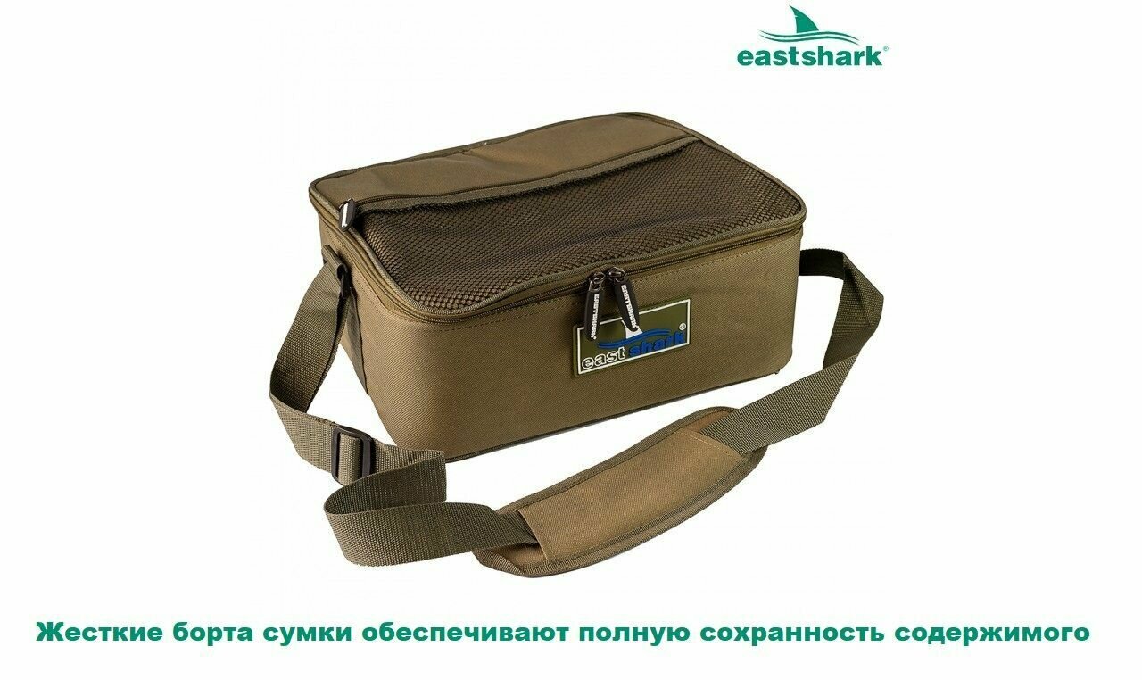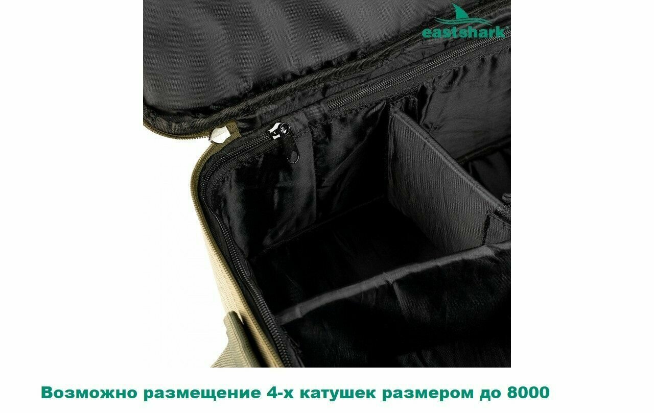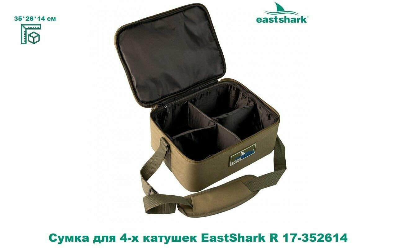 Сумка для катушек EastShark. Имеет размер 35*26*14 см. Вмещает катушки размером до 8000. Возможно размещение 4-х катушек. Износостойкая молния. Жесткие борта сумки обеспечивают полную сохранность содержимого! удобная анатомическая лямка , внешний карман из сетки