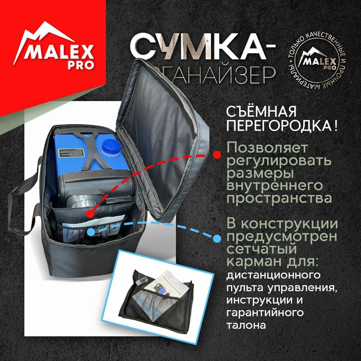 Она предназначена для хранения и транспортировки вашего устройства, обеспечивая надежную защиту от пыли, повреждений и неблагоприятных погодных условий. Имеет внутренний отсек для хранения принадлежностей: гофры воздуховода, выхлопной трубы и глушителя, проводов, ножек. Внутренняя перегородка сумки имеет сетчатый карман, для размещения пульта дистанционного управления, инструкции и гарантийного талона.