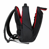 Основной отсек для хранения и переноски музыкального оборудования имеет пластиковую крышку, которая оберегает оборудование от сильных ударов, дополнительную защиту оборудованию придает рифленый поролон, крепится оборудование к рюкзаку лямками на фастексах защелках. Основной отсек закрывается на водоотталкивающую молнию SBS и имеет секретный замок TSA от воров.