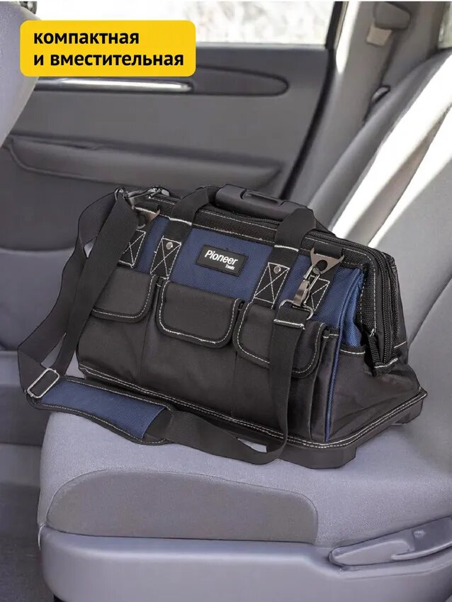 Сумка для инструментов Pioneer BG-04, 16 карманов, 20 л, металлический каркас, твердое дно, 43х20х29 см: сравнение цен, характеристики, фото, актуальное наличие и цены.