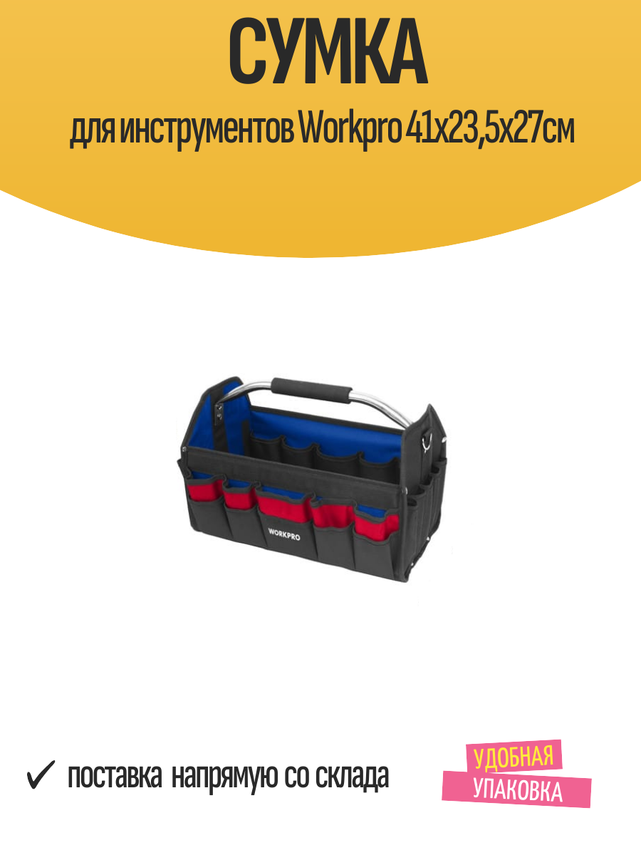 Купить Сумка для инструмента WORKPRO открытая, 600D 410x235x270 мм WP281011 с доставкой по всей России.