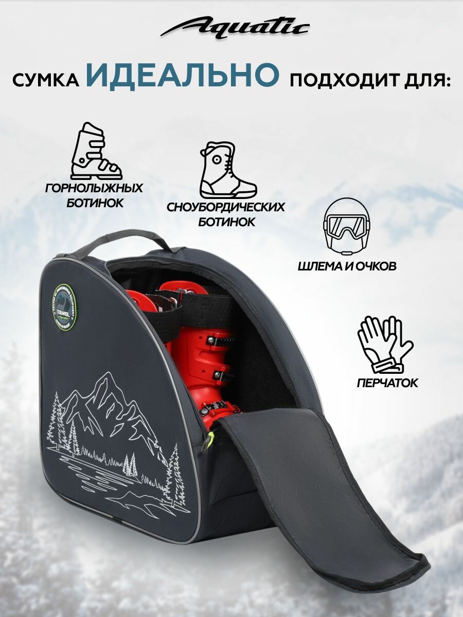 Купить Сумка для лыжных ботинок Aquatic СДЛБ-03, влагонепроницаемая, темно-серая, 44x39x25 см с доставкой по всей России.