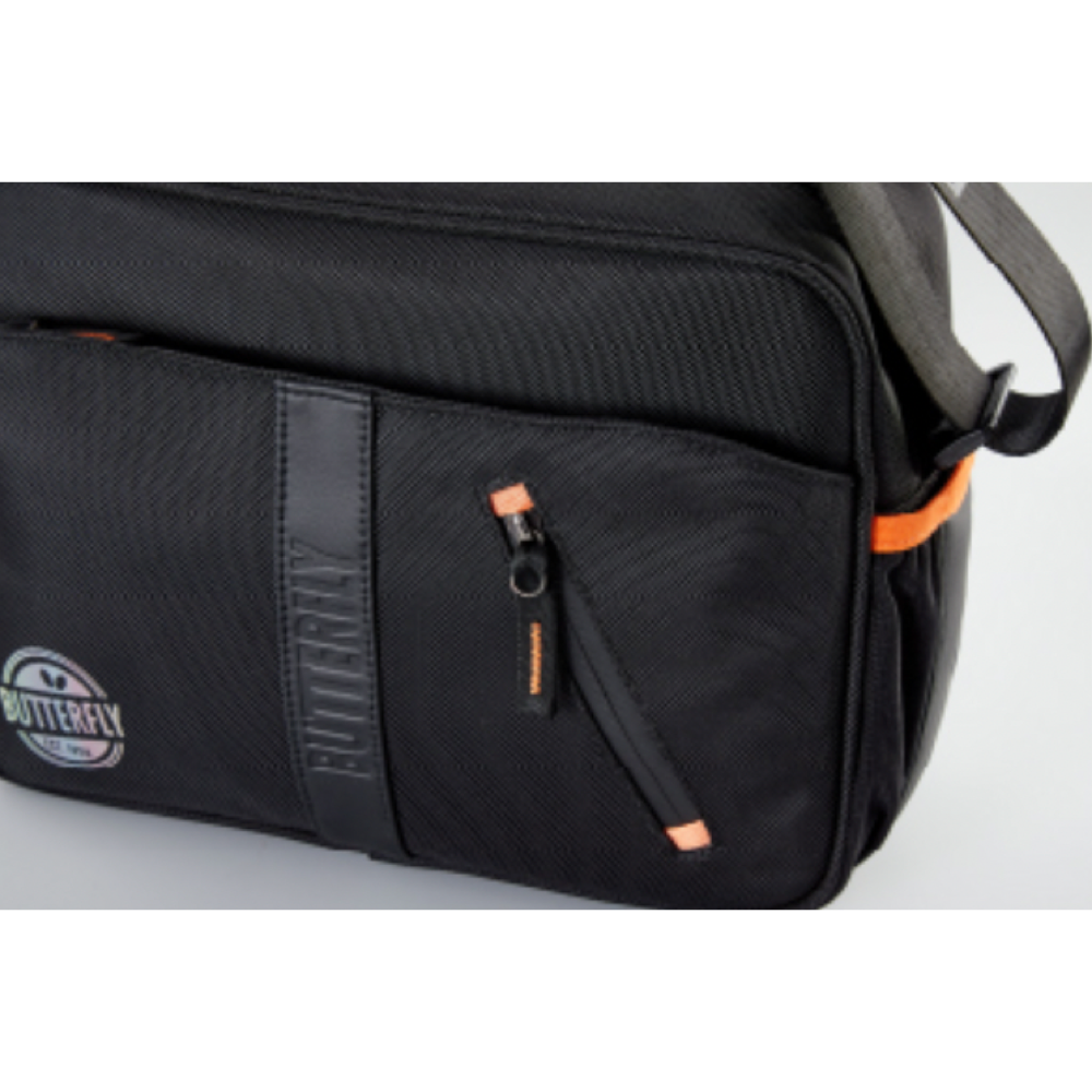 Сумка для настольного тенниса на плечо BUTTERFLY EST.1950 (BTY-355) Функциональная и вместительная сумка объёмом 9 л для необходимой спортивной атрибутики и документов. Продуманные детали включают металлическую молнию, регулируемый по длине наплечный ремень и множество различных отделений. Основное отделение с карманом на молнии и разграничителем. Передний карман на молнии для аксессуаров. Маленький карман на молнии для документов. Боковые карманы. Наплечный ремень, регулируемый по длине. Сумка оборудована инновационной застежкой-молнией YKK, которая обладает более высокой износостойкостью. Сумка для настольного тенниса на плечо BUTTERFLY EST.1950 (BTY-355) выполнена в черном цвете с яркими оранжевыми элементами. Подойдет судьям, тренерам и многим другим любителям настольного тенниса как для работы, так и для повседневных тренировок. Размеры: 31 × 22,5 × 13 см Объём: 9 л Цвет - черный