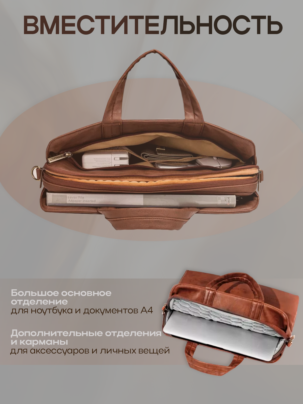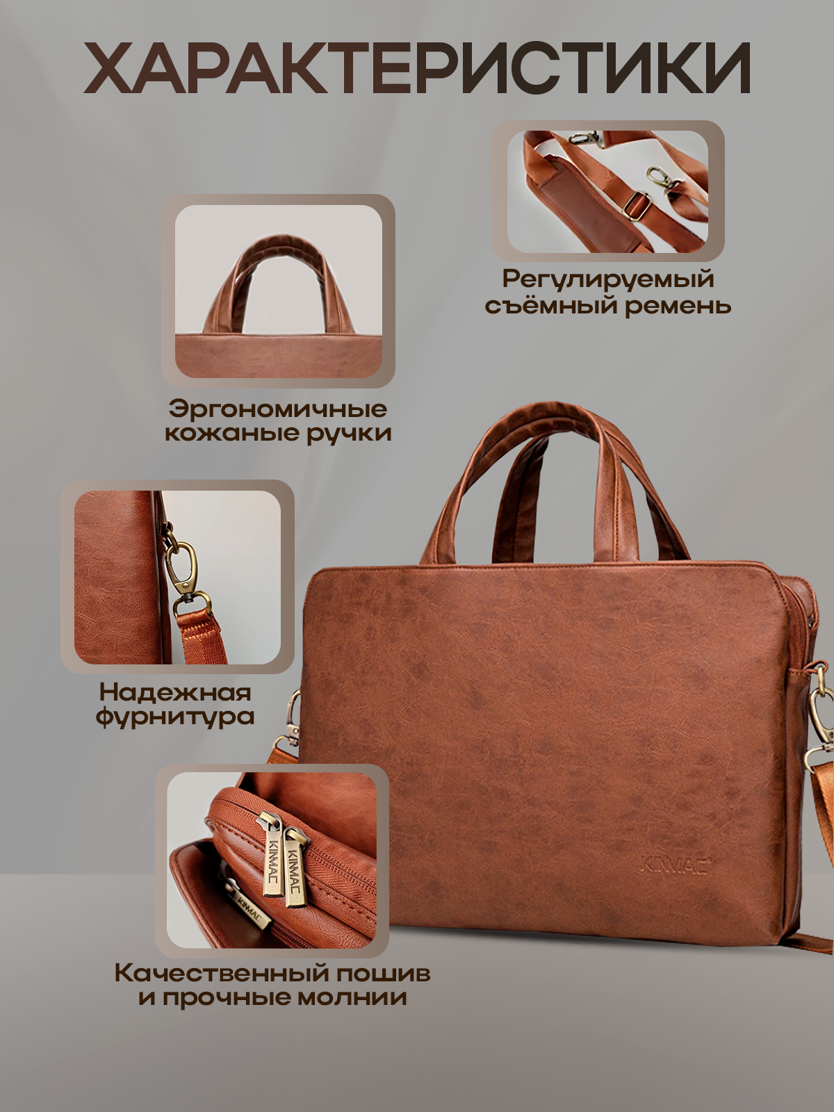 Сумка для ноутбука 15.6, 16 и 17 дюймов KINMAC с ремнем на плечо и 3 отделениями (Коричневая экокожа): сравнение цен, характеристики, фото, актуальное наличие и цены.