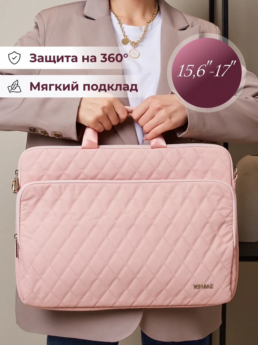 Сумка для ноутбука 15.6, 16 и 17 дюймов KINMAC с ремнем на плечо и большим карманом спереди (Розовая): сравнение цен, характеристики, фото, актуальное наличие и цены.