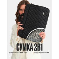 Сумка имеет два отделения. Основное для ноутбука и дополнительное для аксессуаров, в которых Вы с легкостью разместите зарядку, мышь, документы А4, а так же кучу женских штучек: зеркало, расческу, смартфон, косметичку.