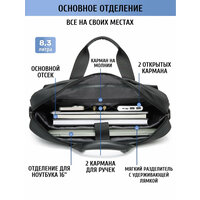 Сумка для ноутбука 15,6 дюйма от бренда Viaggio подходит как для мужчин, так и для женщин. Модель изготовлена из прочного влагостойкого материала Oxford, благодаря которому не боится дождя и снега. Все стороны и дно имеют мягкий вспененный слой для максимальной защиты ваших гаджетов и сохранения формы. Основное отделение оснащено мягким карманом для ноутбука, а также карманом на молнии для мелочи и личных документов. Сумка оснащена большим внешним карманом для планшета, аксессуаров и зарядных устройств и дополнительным карманом со скрытой молнией для вещей, которые всегда должны быть под рукой. Регулируемый съемный плечевой ремень и удобные ручки обеспечивают комфортную переноску. С обратной стороны сумка имеет специальный ремень для крепления на чемодан, чтобы сделать ваше путешествие более удобным. Сумка идеально подходит для работы, путешествий и учебы. Она легкая, весит всего 600 грамм, и ее размеры составляют 41х29х7 сантиметров - что является оптимальным соотношением вместимости и комфорта во время переноски.