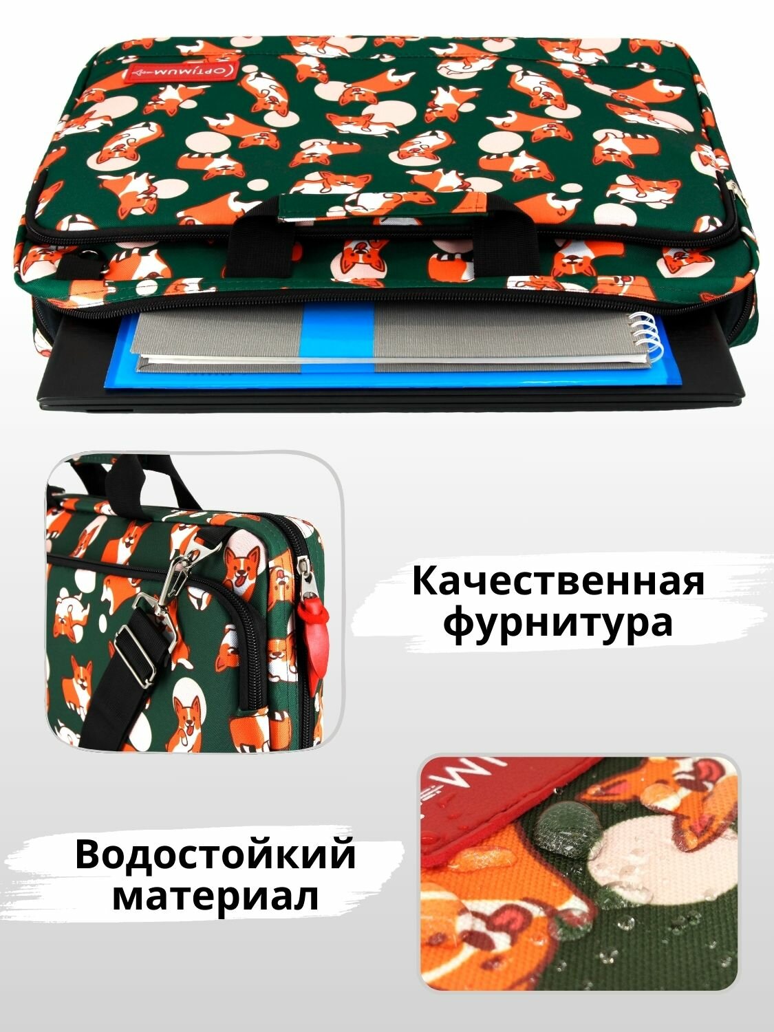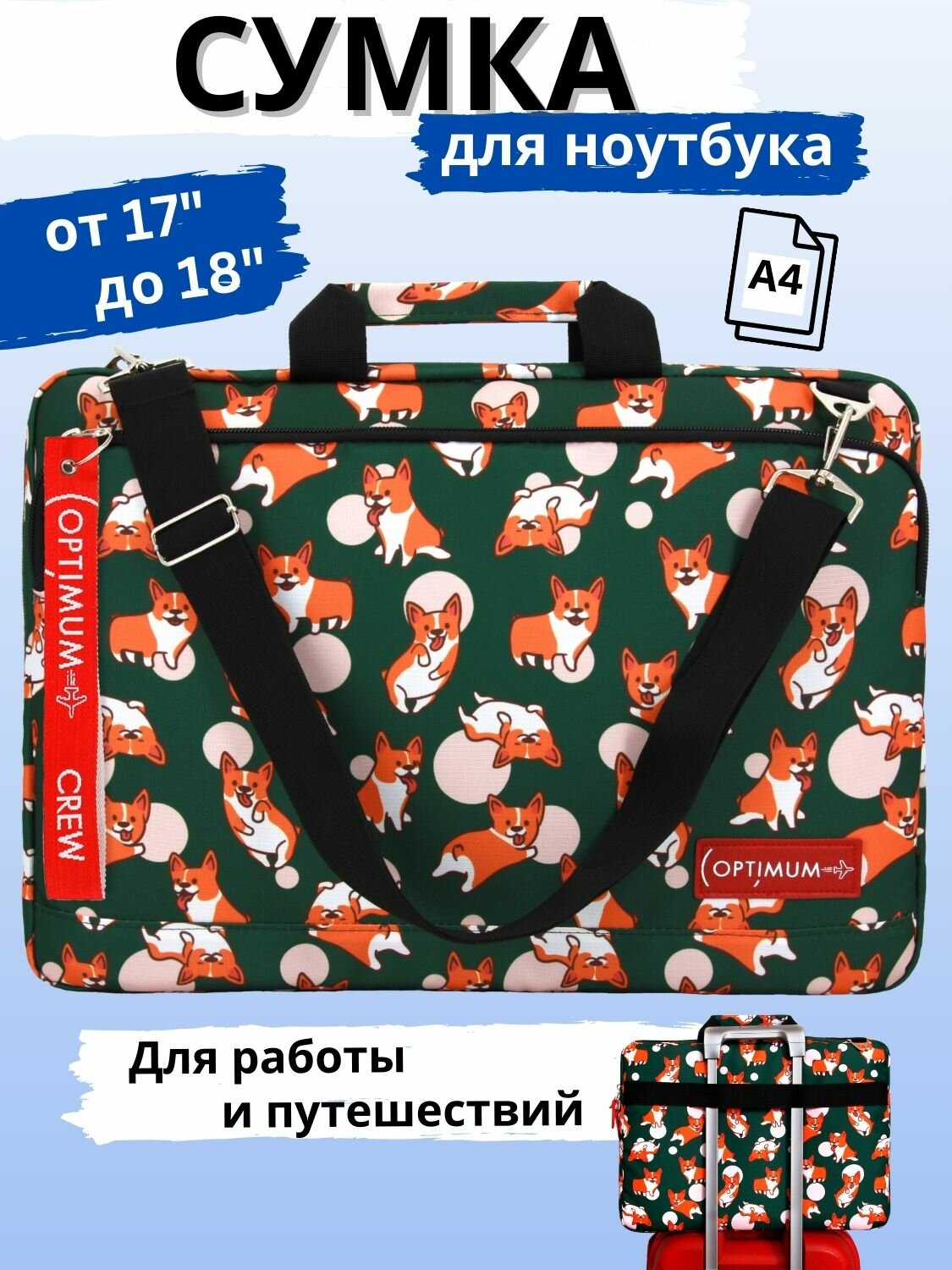 Сумка для ноутбука 17.3 17 18 дюймов от Optimum, корги - яркая стильная сумка для ноутбука с оригинальными принтами. Сумка Optimum 17.3 RL - подойдет для повседневной жизни, работы и деловых поездок. Стильная и легкая папка с ручками а4 на молнии с привлекательным дизайном не только облегчит транспортировку устройства, но и убережет его от неловких движений, ударов и непогоды. Также изделие может использоваться как органайзер или папка для документов а4, как чехол для ноутбука. Мягкая подкладка защитит ноутбук от ударов. Водоотталкивающая пропитка убережет ваше устройство от намокания. Внутри основного отделения есть резинки для фиксации ноутбука. Отстегивающийся регулируемый удобный плечевой ремень, приходящий на замену ручкам. Надежная двойная застежка-молния предотвращает случайное выпадение и обеспечивает быстрый доступ к устройству. Ремень для возможности крепления на выдвижную ручку чемодана. Внешнее отделение для аксессуаров - зарядного устройства, компьютерной мыши, HDD-накопителя, powerbank и т. д. Отличный подарок на день рождения мужчине, женщине, ребенку.