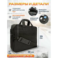 Сумка для ноутбука, для документов, для путешествий. Это сумка для ноутбука с двумя большими отделениями, в одном из которых удобный и надежный отсек для ноутбука. Помимо основных отделений, в сумке масса карманов для аксессуаров, ключей, телефона. Многофункциональный деловой чехол для ноутбука с диагональю экрана до 15,6 дюймов создан для безопасной транспортировки электроники. Портфель содержит уплотнения в стенках, что гарантирует безопасность вашему устройству от сколов и царапин. Сумка сшита из плотной, крепкой и приятной на ощупь ткани. Багажная лента позволяет зафиксировать рюкзак на ручке чемодана во время путешествий или деловой поездки. Цветовая гамма дает возможность выбрать кейс для мужчины или женщины. Вместительная сумка кейс небольшая и легкая подойдет для офиса, для работы, для похода в школу. Перегородка внутри с липучкой-держателем для фиксации создана для документов А4, личных вещей, зарядного устройства и мышки. Двойная молния обеспечивает быстрый доступ к ноутбуку, защищает от попадания внутрь воды и пыли. Регулируемый съемный ремень и дополнительно прошитые ручки обеспечивают удобство в дороге.