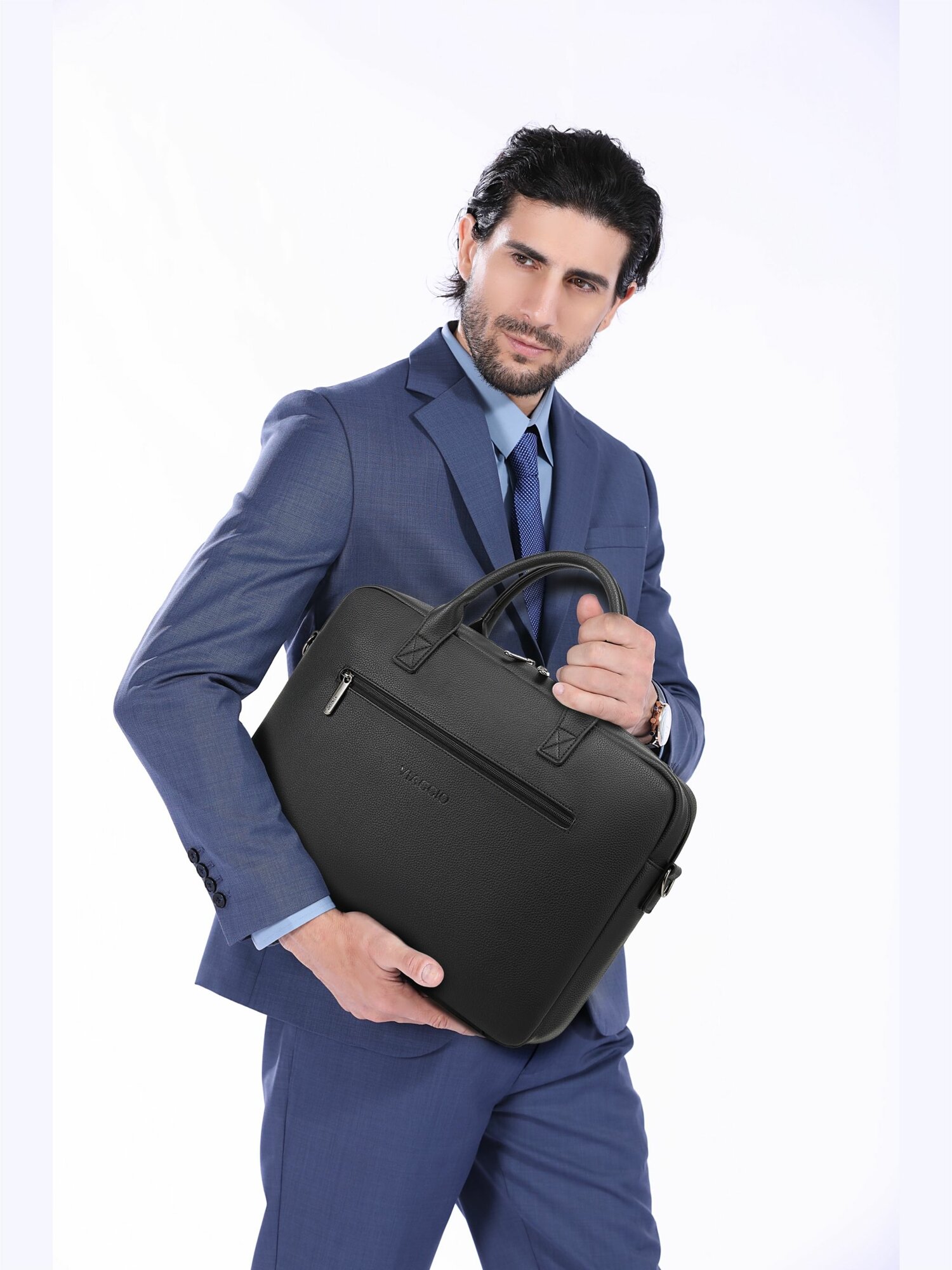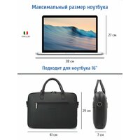 Купить Сумка для ноутбука MacBook VIAGGIO 15.6, 16 и документов противоударная черная матовая кожаная с доставкой по всей России.