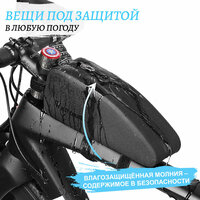 Преимущества велосумки на раму West Biking Практичная и надежная Велосумка выполнена в форме треугольника со скругленными углами и гранями из износостойкого материала, не боящегося агрессивного воздействия окружающей среды, – нейлона. Защищает от влаги и грязи Помимо нейлона, который отталкивает воду и просто чистится, влагозащищенной сделана и молния. Через нее не проникнут внутрь капли воды и частички грязи, а значит брызги от луж не навредят внутреннему содержимому. Чтобы очистить внешнюю поверхность сумки от грязи, надо будет всего лишь протереть загрязнение влажной салфеткой. Вместительное отделение Отделение застегивается на молнию. Внутреннее пространство вместит самые необходимые в дороге вещи. Вы сможете сложить туда личные вещи, инструменты для срочного ремонта, небольшой перекус и фонарь на случай, если вы вернетесь домой после заката, очки, смартфон. Удобное крепление Закрепляется на раму велосипеда с помощью ленты-липучки. Это универсальный тип крепления, который подойдет для различных моделей велосипедов. Чтобы при езде сумка крепко держалась на одном месте и не смещалась, она фиксируется за раму в трех точках. Если вам надо будет оставить велосипед на парковке, то сумку можно быстро снять и взять с собой. Характеристики велосумки на раму West Biking Крепление велосумки: На раму под раму Особенности велосумки: Водоотталкивающая пропитка Влагозащищенная молния Материал: Нейлон Размеры, мм: 250x105x63 Вместительность, л: 1.6
