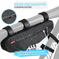 Преимущества велосумки под раму West Biking Практичная и надежная Велосумка выполнена в форме треугольника со скругленными углами и гранями из износостойкого материала, не боящегося агрессивного воздействия окружающей среды, – нейлона. Защищает от влаги и грязи Помимо нейлона, который отталкивает воду и просто чистится, влагозащищенной сделана и молния. Через нее не проникнут внутрь капли воды и частички грязи, а значит брызги от луж не навредят внутреннему содержимому. Чтобы очистить внешнюю поверхность сумки от грязи, надо будет всего лишь протереть загрязнение влажной салфеткой. Вместительное отделение С одной стороны сумки находится отделение, а с другой стороны – карман, которые застегиваются на молнию. Внутреннее пространство вместит самые необходимые в дороге вещи. Вы сможете сложить туда личные вещи, инструменты для срочного ремонта, небольшой перекус и фонарь на случай, если вы вернетесь домой после заката, очки, смартфон. Удобное крепление Закрепляется на раму велосипеда с помощью ленты-липучки. Это универсальный тип крепления, который подойдет для различных моделей велосипедов. Чтобы при езде сумка крепко держалась на одном месте и не смещалась, она фиксируется за раму в пяти точках. Если вам надо будет оставить велосипед на парковке, то сумку можно быстро снять и взять с собой. Характеристики велосумки под раму West Biking Крепление велосумки: Под раму Особенности велосумки: Водоотталкивающая пропитка Светоотражающие элементы Влагозащищенная молния Материал: Нейлон Размеры, мм: 330x115x55 Вместительность, л: 2