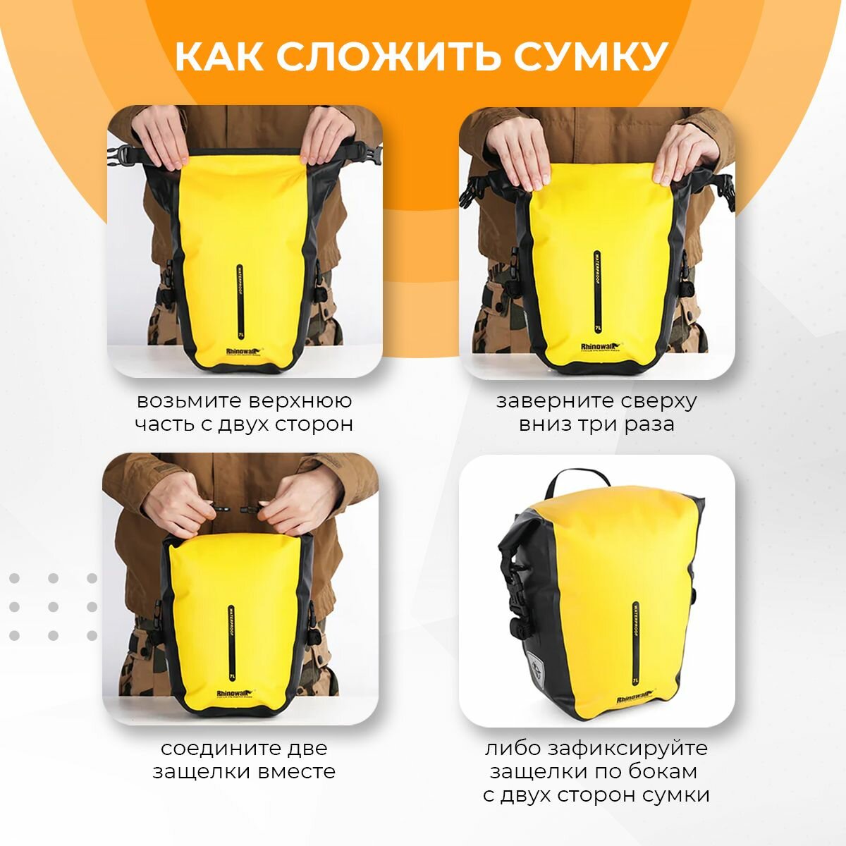 После закатывания отверстия сумки используйте пряжки, чтобы закрыть ее с двух сторон или сверху, для удобства переноски предусмотрен один плечевой ремень. Светоотражающий ремешок и логотип бренда: вам не придется беспокоиться о езде на велосипеде ночью.