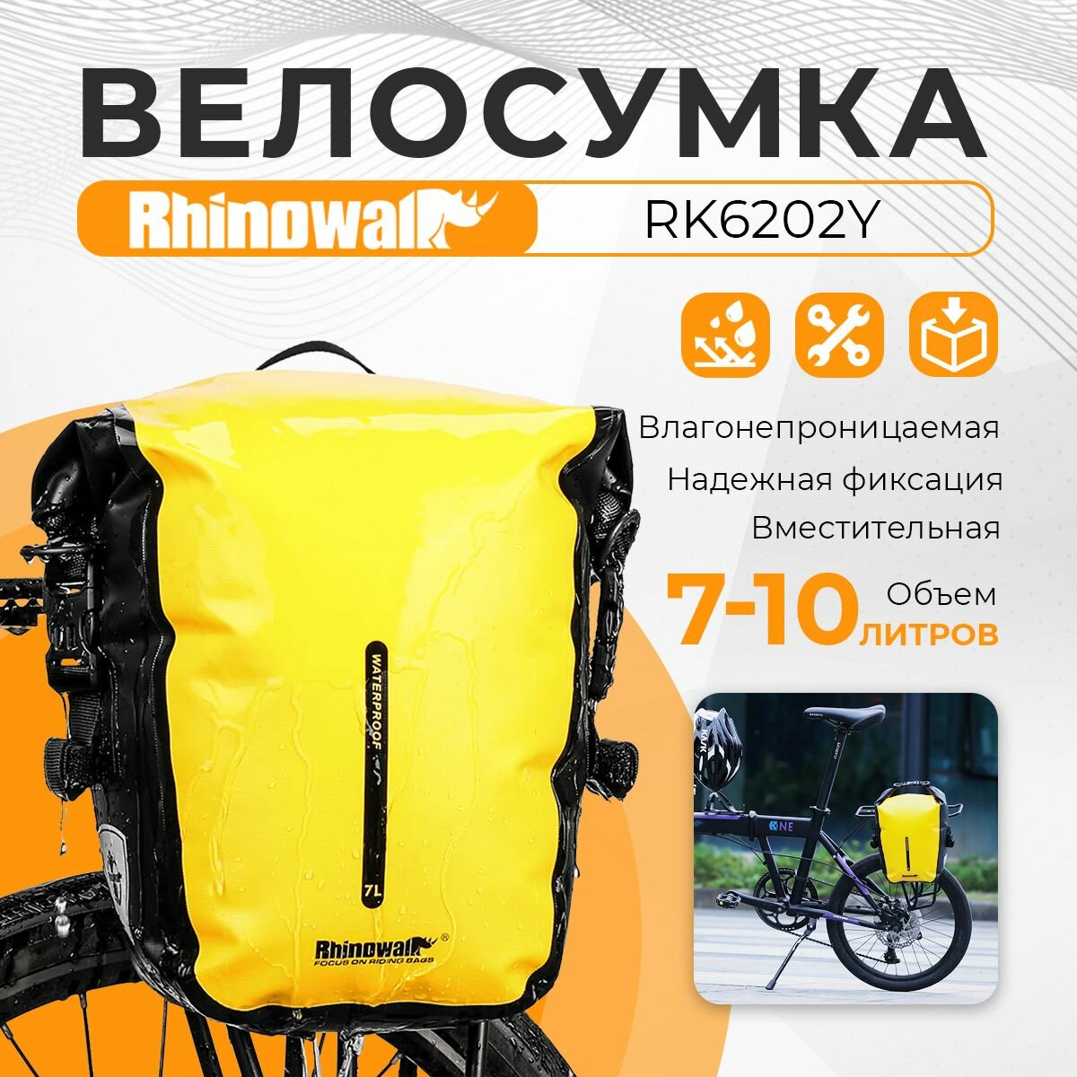 Купить Сумка для велосипеда Rhinowalk RK6202Y, 7-10 л, водонепроницаемая, желтая с доставкой по всей России. Сумка для велосипеда Rhinowalk RK6202Y, 7-10 л, водонепроницаемая, желтая: сравнение цен, характеристики, фото, актуальное наличие и цены.