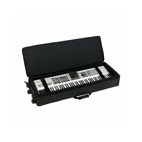 Rockcase RC21519B полужесткий кейс на колесах 130х38х15 (WK-220/WK-7600/NP-V60/MOTIF XF7) Плотный непромокаемый материал Rok Tex Внутренняя обивка черным вельветом 30мм каркас из пенного наполнителя Большой внешний карман Система крепежа для клавишной стойки на боковой панели Двойная ручка для переноски Ручка и два колеса для удобной транспортировке