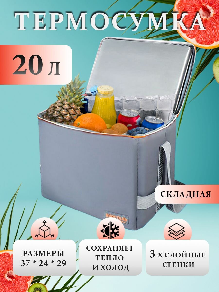 Сумка-холодильник BIOSTAL "дискавери" цвет "ледяной графит" 20 л TCP-20G-Z подойдет для походов, путешествий и т. д.