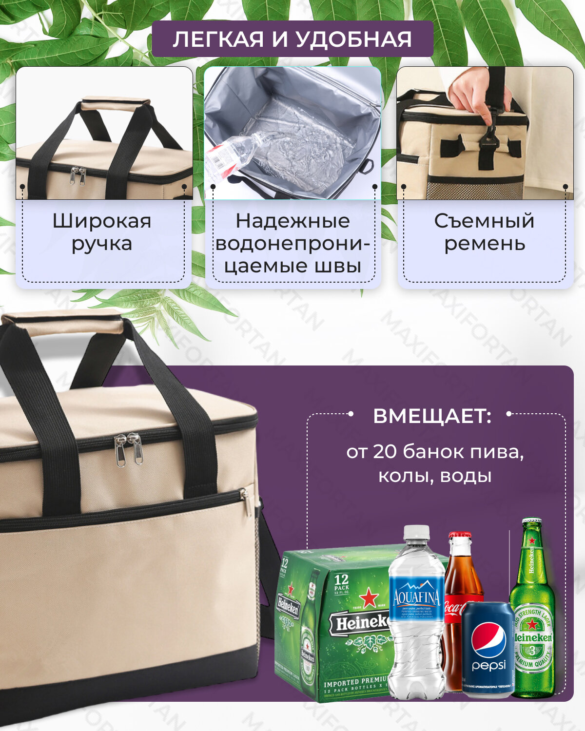 Сумка-холодильник (термосумка) 18 л (29х33х21 см) цвет бежевый/черный (MAXIFORTAN): сравнение цен, характеристики, фото, актуальное наличие и цены.