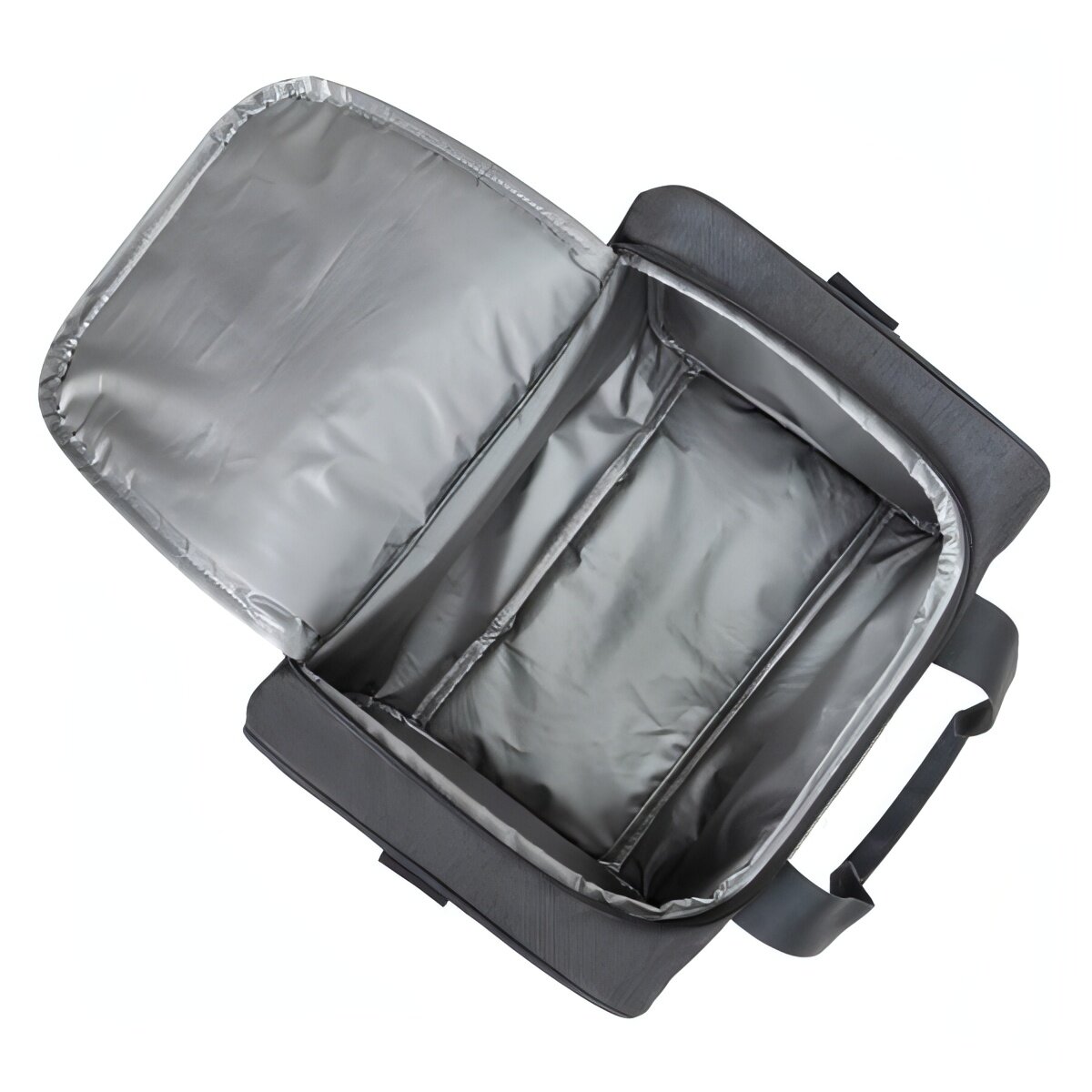 Сумка оснащена наружным карманом, регулируемым съемным плечевым ремнем и прочными транспортировочными ручками с накладкой, обеспечивая удобство переноски. В комплекте с сумкой идет контейнер для продуктов и крышка с фиксацией, а также ручка для переноски.