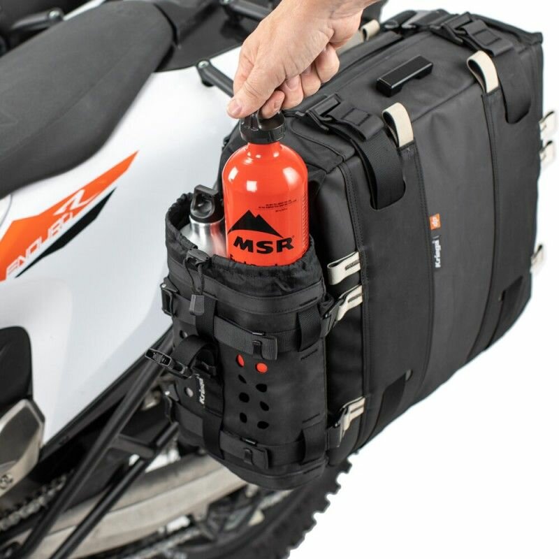 OS-Bottle — универсальный прочный держатель для бутылок. Прикрепите к OS-PANNIER, US-DRYPACK или TANK, и у вас будет легкий доступ к 2 бутылкам с напитками или топливом объемом 1 литр. Максимальный размер бутылки: диаметр 80 мм, длина 280 мм