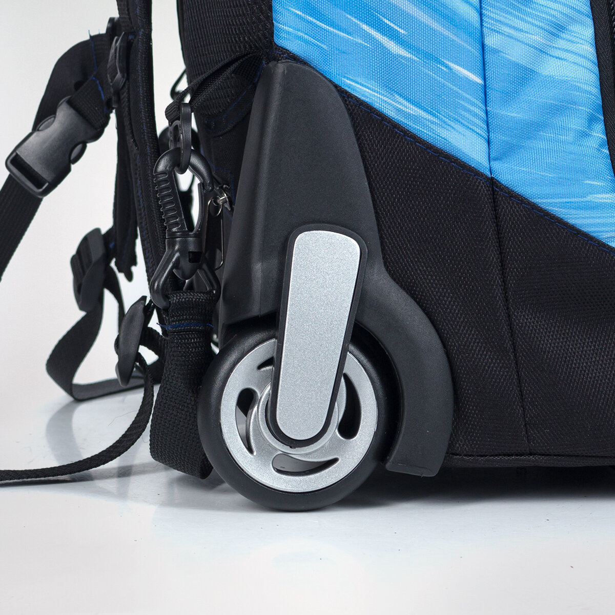 Перед Вами эргономичная и удобная сумка рюкзак на колесах для фигурного катания. Сумка-рюкзак позволят Вам проще перевозить свои вещи. Прочные и бесшумные колеса изготовлены из полиуретана диаметром 80 мм с усиленной ступицей. В сумке предусмотрен чехол для колес, при использовании сумки, как рюкзака. Телескопическая ручка из алюминия фиксируется в 2-х положениях для простоты использования. • Прочные и бесшумные колеса изготовлены из полиуретана диаметром 80 мм • Лямки рюкзака регулируются в нескольких положениях для обеспечения дополнительного комфорта • Заднее отделение предназначено для хранения коньков • Центральный карман с двойной молнией предназначен для хранения одежды • Передний карман на молнии предусматривает хранение мелких предметов, таких как запасные шнурки, носки и т. п. • Размеры сумки-рюкзака позволяют его использовать как ручную кладь (39 × 26,5 × 45 см)