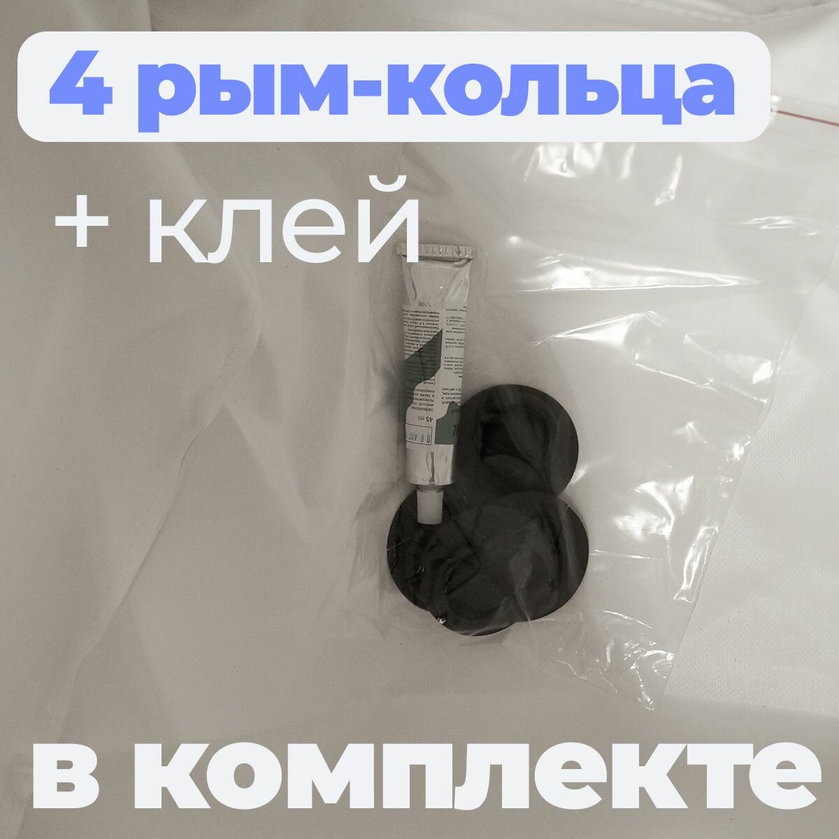 Устанавливается в носовую часть кокпита лодки с помощью 4 натяжных ремней, продетых через рым-полукольца (4 шт.), также в комплекте идет клей для установки рымов.