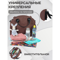 Сумка для коляски - функциональный аксессуар, который оценит каждая мама. С ним самое важное будет всегда под рукой. Сумка-органайзер для коляски удобно крепится к любой ручке колясок или санок с помощью карабинов на липучке и имеет размер 32*36*12 см. Сумка для мамы оснащена 3 карманами снаружи и 4 внутри в которые поместится все, что нужно для прогулки - от средств ухода и игрушек для малыша до личных вещей мамы. Сумка изготовлена из прочного материала с водоотталкивающим покрытием, благодаря которому аксессуар будет служить долго. Органайзер для коляски оснащен ремешком, позволяющим носить аксессуар в руках или на плече. С боку и внутри есть фиксирующая резинка для бутылочки. Мы заботимся о малышах и их родителях.