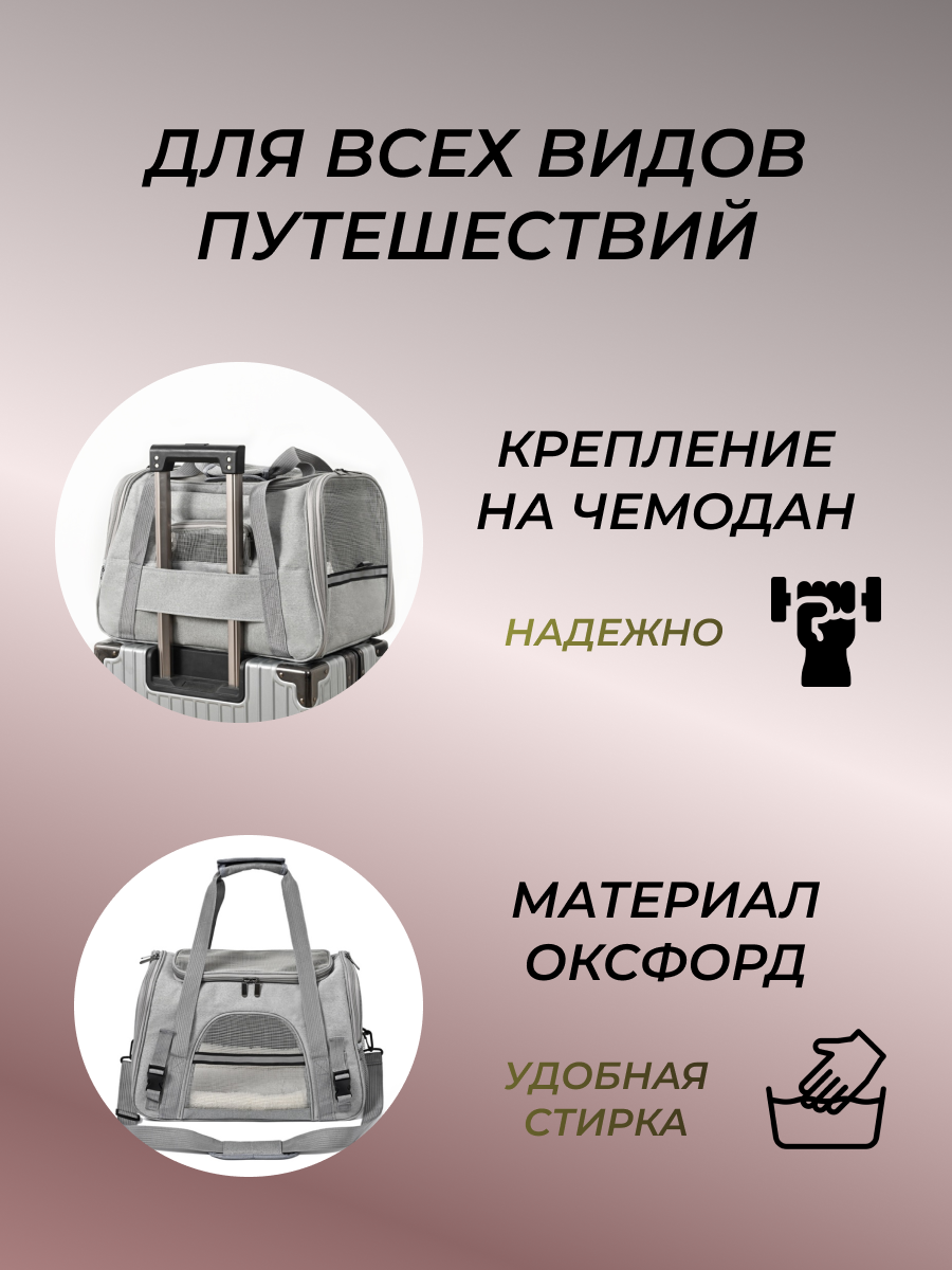Эта удобная и практичная сумка создана специально для перевозки ваших любимых питомцев. Она идеально подойдёт для котят и щенков любых пород, обеспечивая комфорт и безопасность во время путешествий.