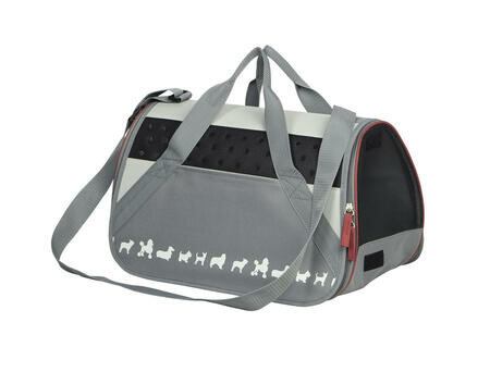 Сумка оснащена ручками, наплечным ремнем, а внутри - карабином для поводка и съемным дном (моющимся). Постоянное поступление свежего воздуха и его хорошая циркуляция обеспечивается сетчатыми вставками с трех сторон.