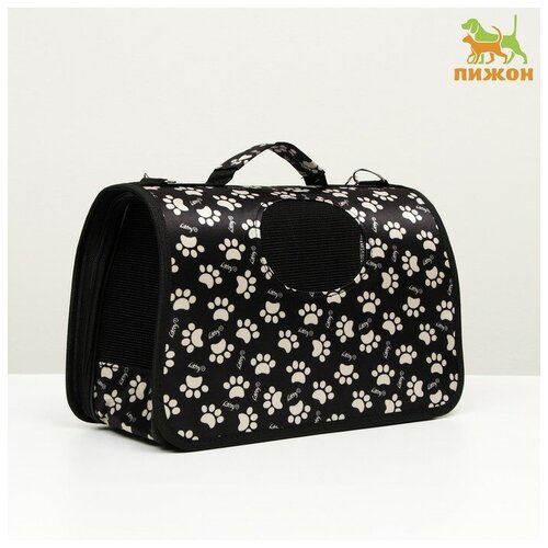 Сумка - переноска для животных Лапки Happy, каркасная, размер М, 40 х 21 х 27 см, чeрная Безопасная и легкая сумка - переноска для перевозки ваших любимцев. Она выполнена из мягкого и прочного материала, имеет сетку для проветривания, которая обеспечивает свежий воздух и комфортную температуру внутри, а также удобную ручку для переноски. В дно переноски вшит плотный картон, чтобы усилить ее жесткость и обеспечить дополнительную поддержку для животного. Максимальная нагрузка сумки 5 кг , позволяет перевозить маленьких и средних по размеру животных. Сумка легко складывается и занимает минимум места при хранении. Эта сумка-переноска - отличный выбор для тех, кто хочет обеспечить своему питомцу комфорт во время перевозки.