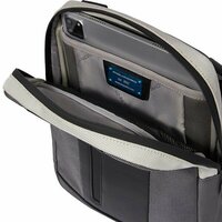 одно отделение с карманом для 10,5 дюймового планшета, отсек для телефона, на передней части расположен вертикальный карман на молнии и крепление для наушников, несъемный регулируемый плечевой ремень