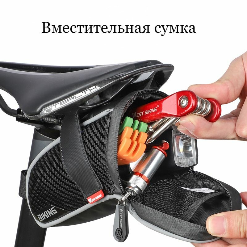 Сумка под седло велосипеда 1,5л. WEST BIKING, черная с серым: сравнение цен, характеристики, фото, актуальное наличие и цены.