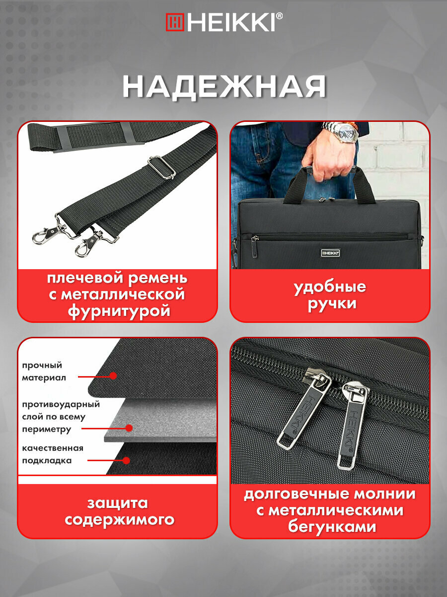 Купить Сумка портфель HEIKKI TEMPO (хейки) с отделением для ноутбука 15,6″, карман, Rush, черная, 30х40х4 см, 272607 с доставкой по всей России. Сумка портфель HEIKKI TEMPO (хейки) с отделением для ноутбука 15,6″, карман, Rush, черная, 30х40х4 см, 272607: сравнение цен, характеристики, фото, актуальное наличие и цены.
