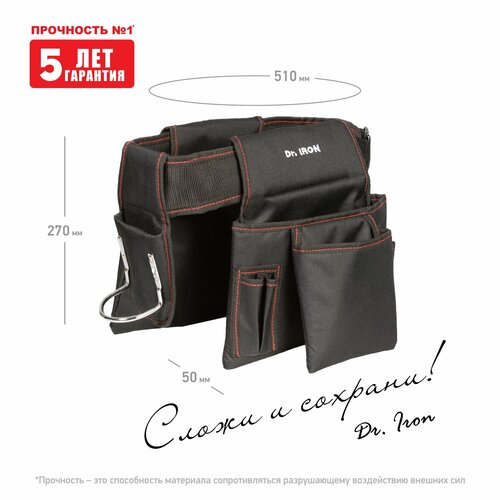 Купить Сумка-пояс для инструмента на ремне 510х270х50 мм 18 карманов Dr.IRON с доставкой по всей России. Сумка-пояс для инструмента на ремне 510х270х50 мм 18 карманов Dr.IRON: сравнение цен, характеристики, фото, актуальное наличие и цены.