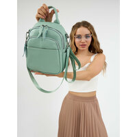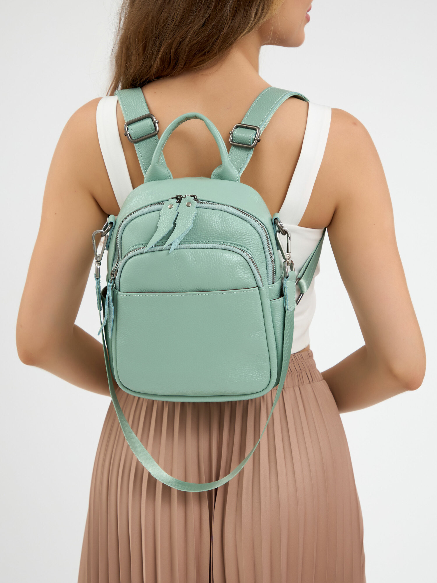 сумка-рюкзак удачно сочетает в себе преимущества небольшой сумочки и рюкзака. Его можно носить как на спине, так и на плечо на короткой лямке. Кожаная ручка-петелька позволяет удобно разместить рюкзак в гардеробе, за столиком кафе или нести рюкзачок в руке;