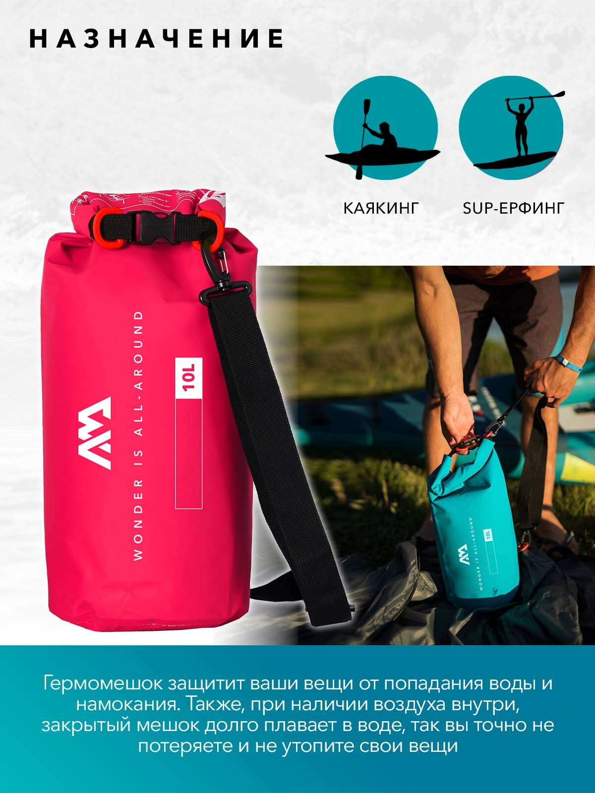 Сумка-рюкзак водонепроницаемая Aqua Marina DryBag 10L цвет розовый гермомешок (B0304077): сравнение цен, характеристики, фото, актуальное наличие и цены.