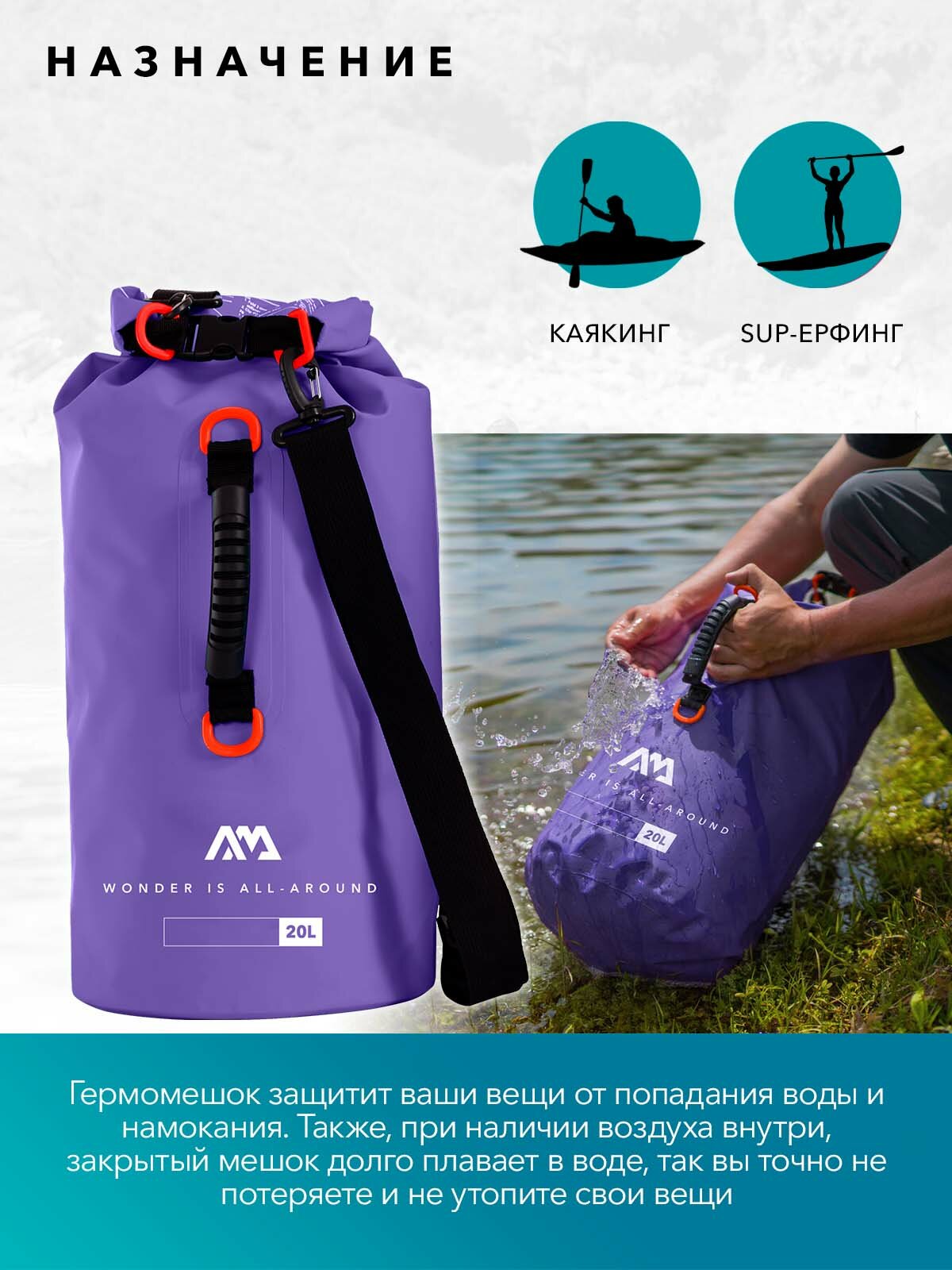Купить Сумка-рюкзак водонепроницаемая Aqua Marina DryBag 20L цвет фиолетовый гермомешок (B0304081) с доставкой по всей России.