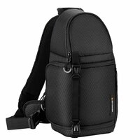 Сумка для камеры имеет совсем небольшие размеры. Ее объем составляет всего 10 литров, но при этом легко вмещает в себя одну зеркальную камеру и два сменны объектива в нижнем отделении. Верхний отсек предусмотрен для хранения и транспортировки более мелких предметов, таких как аккумулятор, карты памяти и кабели. Сумку можно носить как на груди, так и на спине. Удобная конструкция позволяет ей быстро вращаться вокруг вашего тела, обеспечивая легкий и быстрый доступ к камере